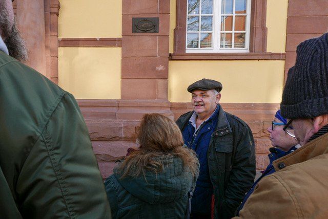 Jens Arndt vom Hanauer Geschichtsverein 1844 e.V. erklärt die Nutzung der Hutier-Kaserne, Foto: Anouchka Olszewski